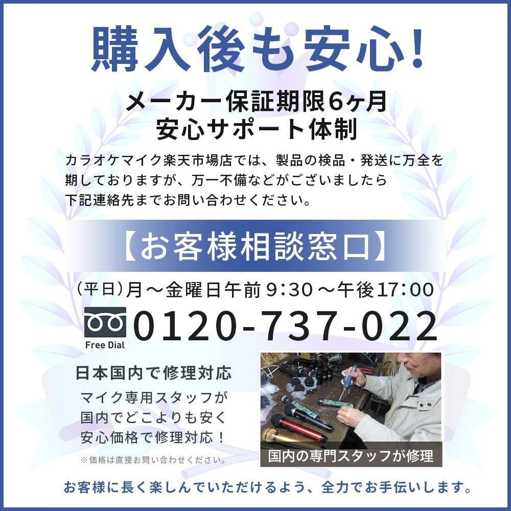 マイクは1本づつ丁寧に組み立て検品して出荷しておりますが、万一商品に初期不良がございましたら、到着後7日以内にご連絡ください。